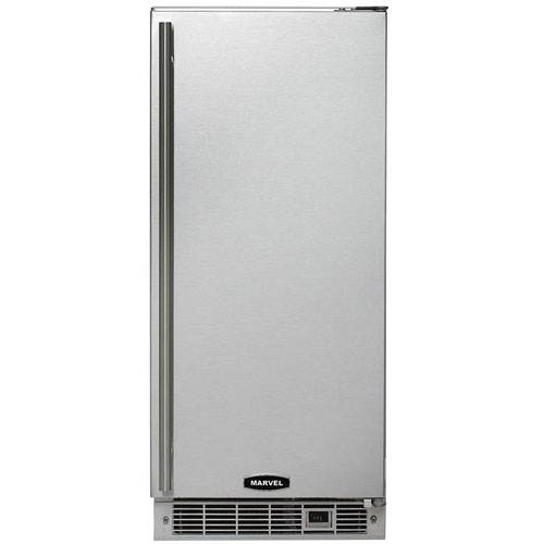 Keep all of your drinks ice cold with the Marvel 15 Outdoor Crescent Ice Maker Stainless Steel (25OIM-SS-F-R, 25OIM-SS-F-L). This amazing ice machine produces smooth crescent ice cubes that are perfect for cooling your drinks throughout the summer. With production capacity of twelve (12) lbs of ice for every 24 hrs, and a storage capacity of fifteen (15) lbs of ice at one time, this ice machine is more than enough to produce enough ice for you, your family and your friends, and removes the need to spend time and money buying the expensive ice bags every time you have guests or special occasions. The door on this exquisite ice machine is made from flawless stainless steel that is sure to mach your existing outdoor appliances and gives the machine a sleek and modern appearance. A self closing door ensures that the seal is always formed and that you wont have to worry about an accidentally ajar door running up your energy bills and melting your ice. Another convenient feature of this ice maker is that it does not require a drain, making it easy to place exactly where you want it, and is incredibly easy to set up and start running. To give you more adjustability on placement Marvel included 1 adjustable legs underneath so that you have room to set the unit to the perfect height. This great ice maker is a perfect addition for anyone who likes to entertain, or just use alot of perfectly formed ice without having to buy large bags from a grocery or convenience store. Large Ice Production:This amazing unit can create up to 12 lbs of ice per 24 hours No Drain Required:The unique design of this ice-maker does not require a drain, making it easy and convenient to place in your home Large Storage Capacity:Able to store up to 15 lbs of ice at any one time, with this ice machine you can have all the ice you'll need right at hand