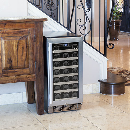 Store your wine in style using the Avallon 30 Bottle Built-In Wine Cooler (AWC300SZ). This wine refrigerator will chill up to 30 of your best bottles of wine at your precise temperature specifications. Contemporary Design: The stainless steel accents - including the seamless door frame, professional handle, and shelving trim - make for a sleek and modern look sure to complement any home decor Built-In Capable: Because of its front ventilation, you can build this unit in flush with cabinetry or store it under the counter Preservation Glass: The argon-filled, low-emissivity glass door makes for a clear view of your collection while also working to filter out harmful UV rays, heat and other environmental elements that can affect the integrity of your wine Temperature Range: With a wide temperature range of 40 - 65°F, you can choose to set your unit to a perfect cellar temperature of 55°F or chill your wines to their ideal serving temperature Air Cooled Technology: This unit uses a powerful air cooling technology, which uses both a compressor and circulation fans to ensure that every inch of the interior is evenly cooled to your precise temperature specifications Roll-Out Shelving:The six (6) wooden shelves are trimmed in sleek stainless steel and are able to be slid out for easy bottle loading and selection Touch Panel Digital Control: Setting, viewing, and maintaining your temperature specifications is easy as can be using the touch control digital display panel Soft Interior Lighting: A soft blue LED interior light bathes your wine in a modern glow and enhances the visibility of your collection Carbon Filter: The integrated carbon filter prevents harmful and unwanted odors from seeping in and affecting the taste of your wine Integrated Safety Lock: Keep your wine safe and out of meddling hands using the integrated safety lock