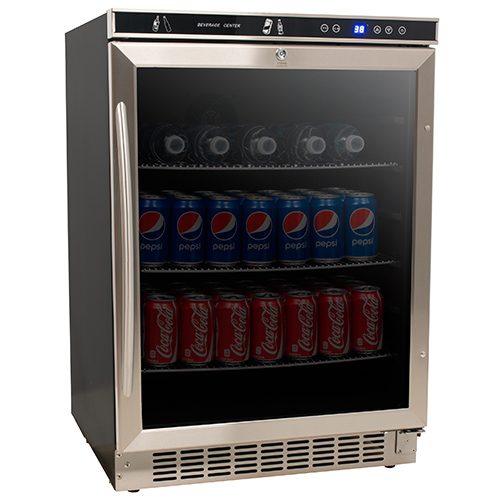 Keep beverages cool with the Avanti Undercounter Mirrored Glass Door Beverage Center (BCA5105SG-1). This stylish beverage center is front vented for built-in or free-standing installation - offering an undercounter refrigeration solution at a price that's easy to fit into your budget. Your beverages store easily in the unit's 3 removable slide-out chrome shelves - with an adjustable thermostat and digital temperature display for easy custom cooling. Featuring a reversible, mirrored glass door and detachable, stainless steel pro-style handle, this flush back refrigerator matches your style - earning it a Best Buy rating from Consumer Reports. Offering spacious, undercounter storage (5.3 cu. ft.) and a sleek, compact design, this Avanti cooler is great buy for any home beverage center. Undercounter Beverage Center:This stylish beverage center is front vented for built-in or free-standing installation - offering an undercounter refrigeration solution at a price that fits into your budget Custom Beverage Cooling:Store beverages easily in the unit's 3 removable slide-out chrome shelves - with an adjustable thermostat and digital temperature display for custom cooling Sleek Design:Featuring a reversible, mirrored glass door and detachable, stainless steel pro-style handle, this sleek flush back refrigerator matches your style - earning it a Best Buy rating from Consumer Reports