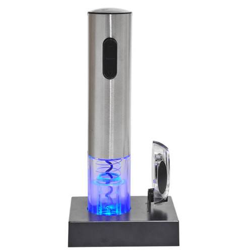 Open your wines with ease when you use the Kalorik Electric Corkscrew (CKS36812). Able to open any wine bottle with ease, this corkscrew can also provide you and your guests entertainment when you watch it remove the cork. The soft blue lighting on the opener adds to the overall presentation, and keeps your kitchen or wine cellar lit up so you can see your way around at night. Stainless steel housing gives this wine opener a modern look and feel, and can add to the style or motif of any kitchen, wine cellar, or other room. Complete with a recharging base that charges the corkscrew up to 8 hours, the unit can uncork up to 30 wine bottles in one full charge, giving you multiple uses without having to put the machine back onto the charging stand. Able to open bottles in just seven (7) seconds, your guests won't have to wait for a long time to be served fresh, robust wines from your personal collection. This battery-powered wine opener is perfect for the amateur and professional collector, and anyone who loves to have some wine now and then. Rechargeable: This corkscrew can recharge for up to 8 hours, and can open up to 30 traditional wine bottles in one full charge Sleek Design: Stainless steel housing adds to the presentation of the unit and allows it to blend in with other kitchen appliances Lighting: The soft blue lighting that emits from the wine opener creates a lighting effect that makes it look great