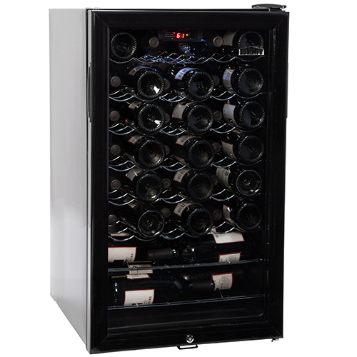 Keep your wine collection safely stored and at the perfect serving temperature with the Summit 42 Bottle Built-In Wine Cellar (SWC525LBI). Its sleek, professional deisgn is capable of freestanding use or built-in installation in any 20 inch wide space. The six (6) scalloped wire shelves and two (2) chrome racks can hold up to 42 standard sized wine bottles. The exterior of the wine cellar is fully finished and the glass door features a factory installed lock. With the digital thermostat you can set the internal temperature between 45° and 65° F, and there are indicator lights for red wine, white wine, and champagne temperatures. The automatic defrost system reduces maintenance and aids the cellar's precise temperature management. Capacity: Able to hold up to 42 standard size wine bottles, the scalloped wire shelves can keep a good variety of wine safe and easily accessible Built-In Capable: Built with space efficiency in mind, this wine cellar can be easily installed under the counter Environmentally Friendly: Designed to be 100% CFC free, this unit is made with zero ozone damaging chemicals
