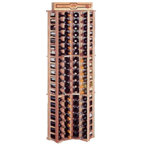 The curved corners form a smooth 90 degree transition between walls. Made of individual bottle racks four columns wide by 21 rows high, this wine rack holds 84 bottles and looks attractive and distinct in any setting.